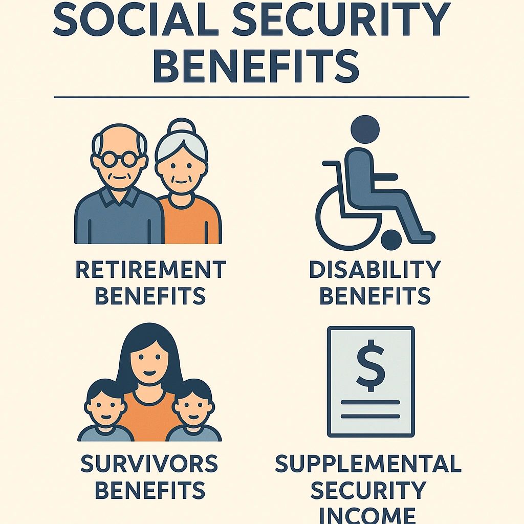 Social Security benefits are payments made by the U.S. government to eligible individuals, mainly to provide financial support during retirement, but also in cases of disability or death.